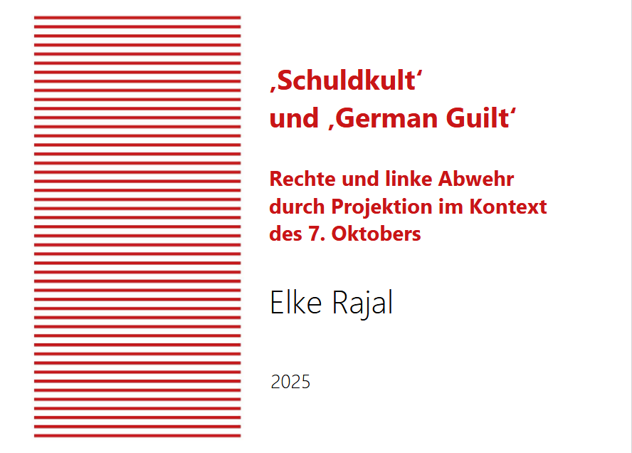 Mit diesen Fragen beschäftigt sich das Working Paper »‚Schuldkult‘ und ‚German Guilt‘. Rechte und linke Abwehr durch Projektion im Kontext des 7. Oktobers« der Soziologin Elke Rajal, das 2025 als Working Paper Nr. 031 am Center for Antisemitism and Racism Studies (CARS) der Katholischen Hochschule Nordrhein-Westfalen in Aachen erschienen ist.